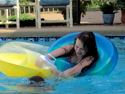 The Princess is quite ticklish. The Boy decided to swim underwater and tickle her feet.